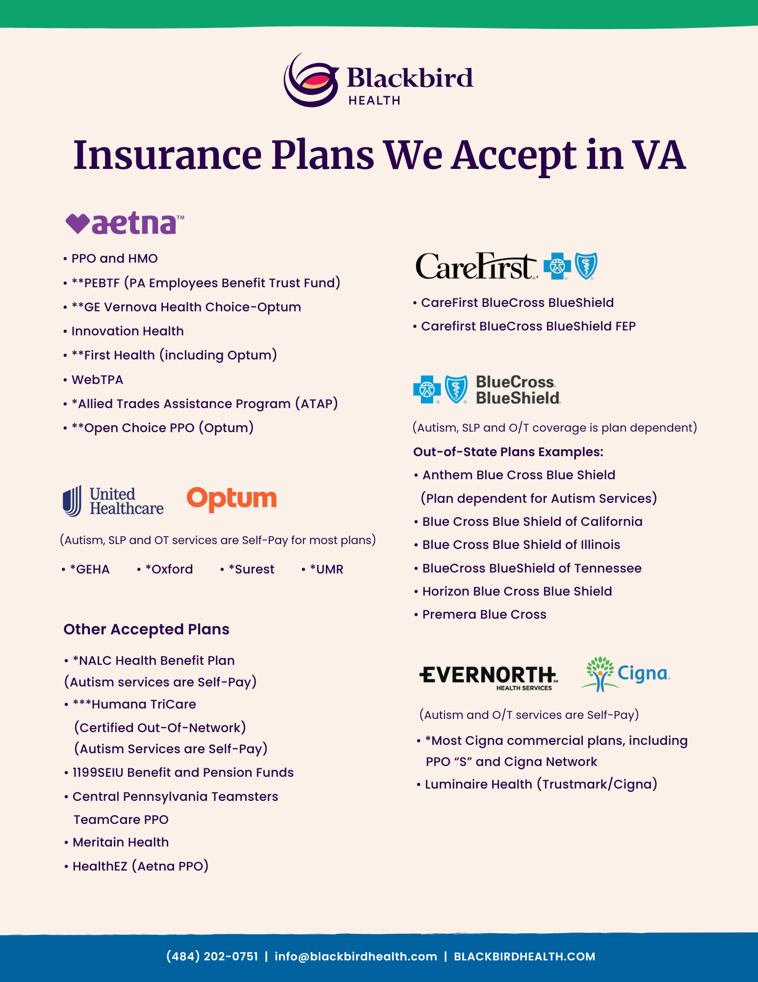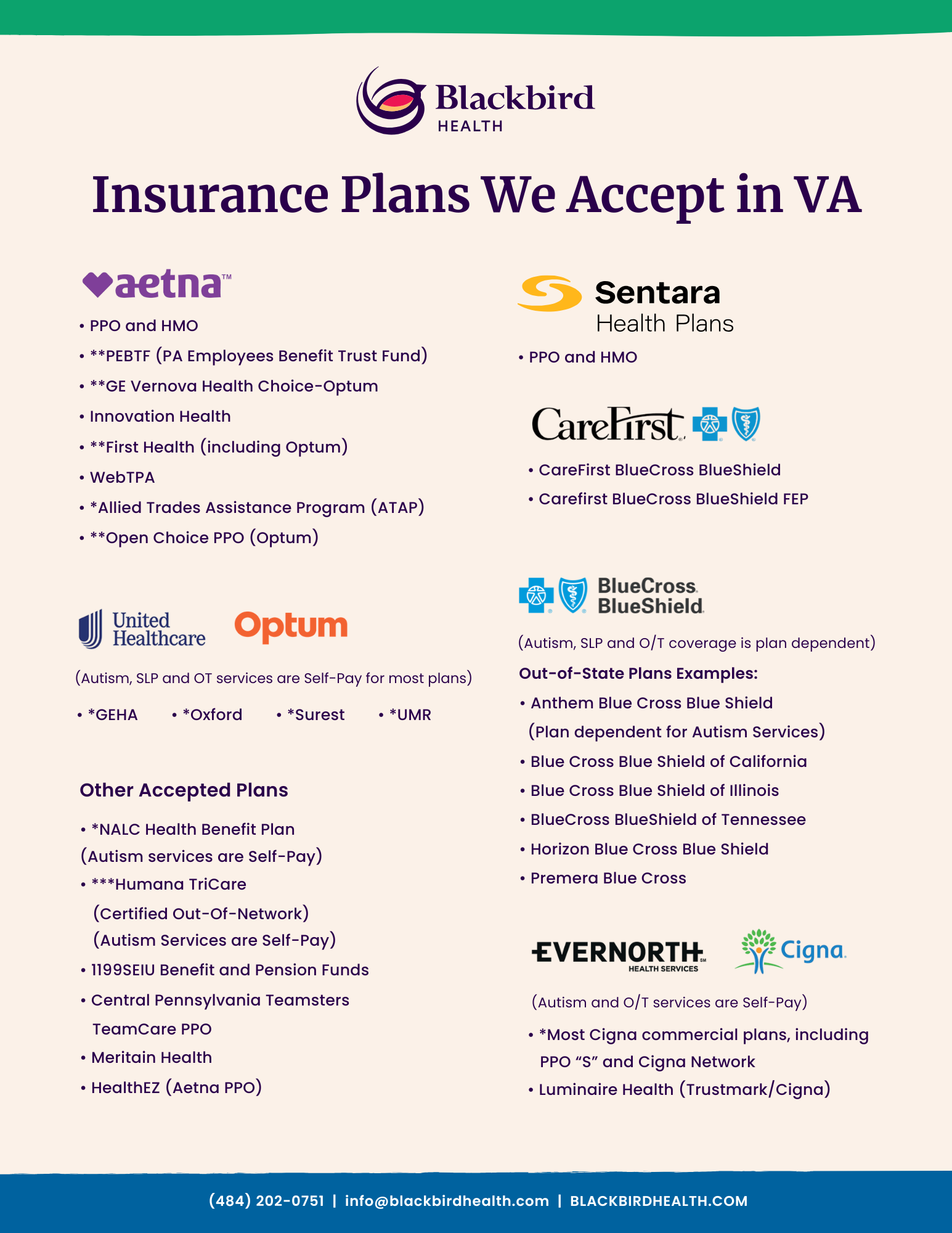 For a complete list of insurance we no accept in Pennsylvania or Virginia, download the pdf.